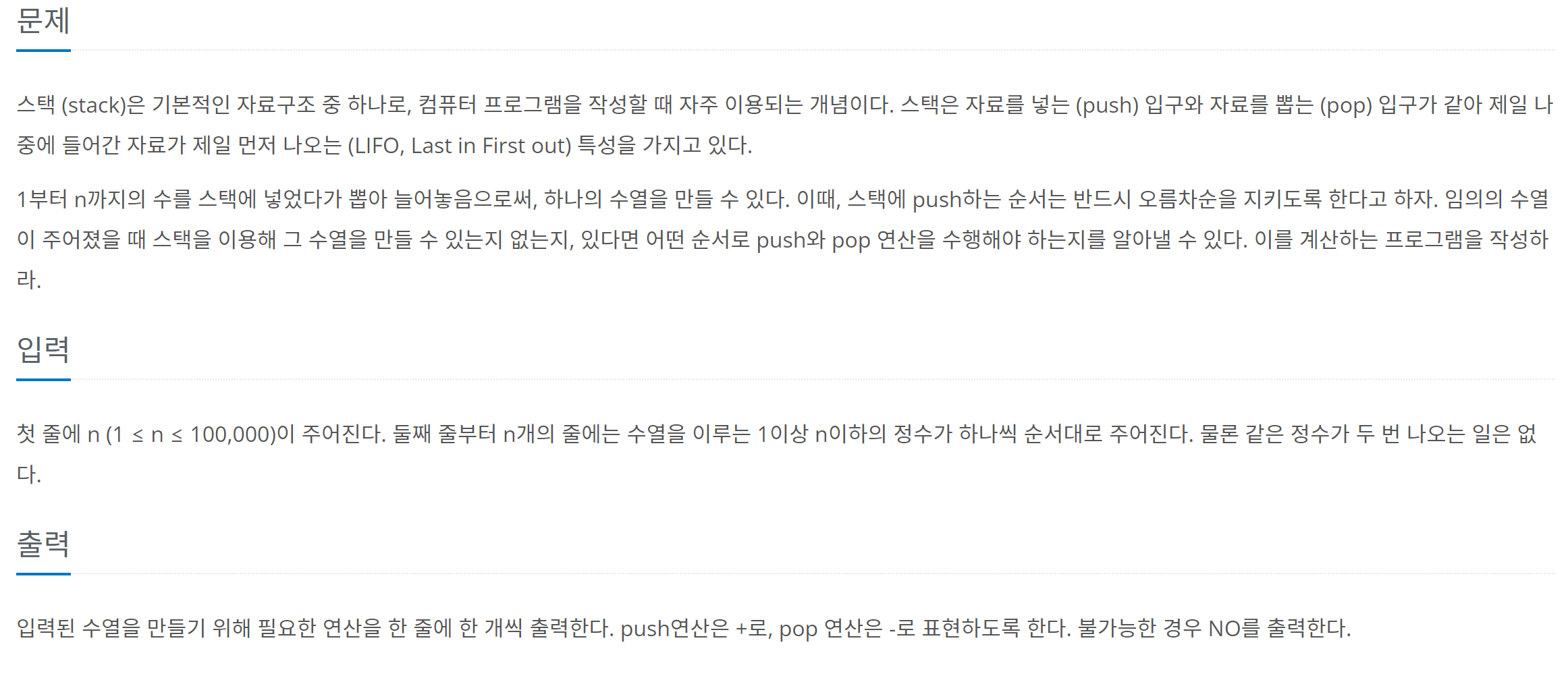 (파이썬) Python3 백준 1874번 - 스택 수열 본문