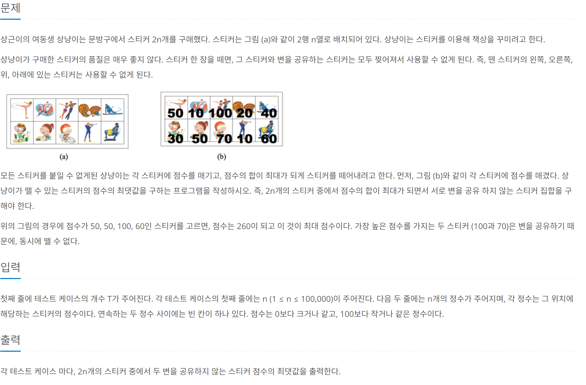 2. b에는 2n개 스티커의 n이 들어간다. c=[0,0]를 미리 만들어서 리스트 맵으로 입력값을 받는다.