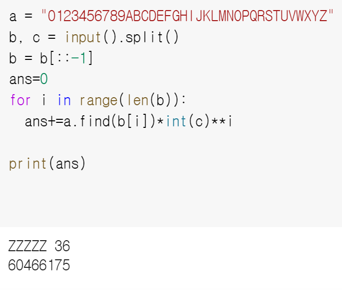 (파이썬) 백준 2745번 진법 변환 파이썬 풀이