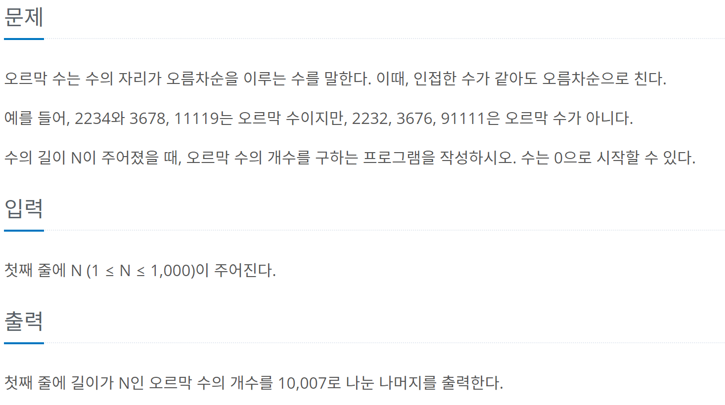 자신 다음의 수가 자신보다 크거나 같기만 하면 오르막 수가 된다.